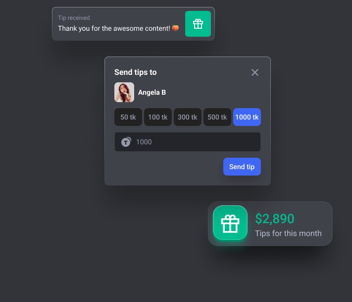 All users can now tip you just because you`re awesome, and they can include a quick message with the tip.